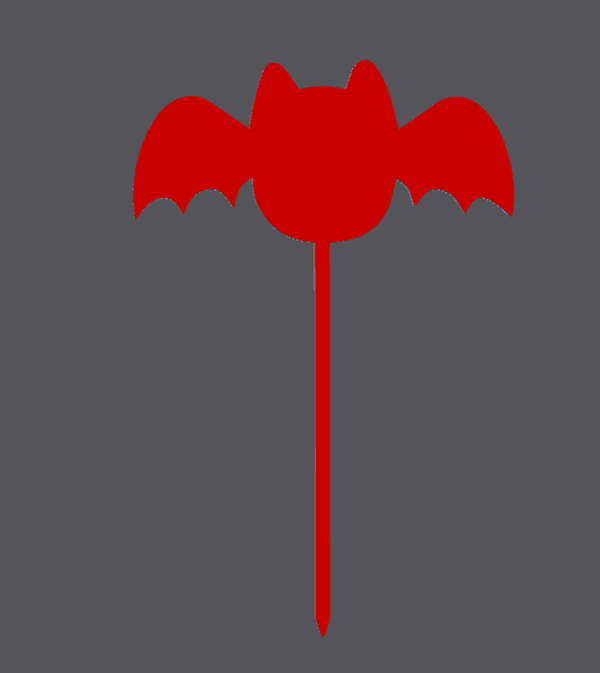 chauves souris 15 cm de longueur et 7 cm de hauteur, et les 2 pics 8 cm de longueur et 12 cm de hauteur.